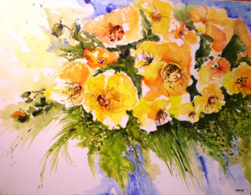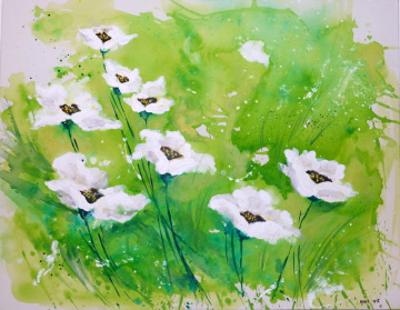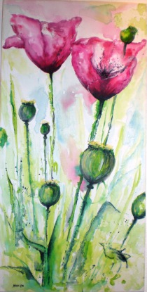 Iris, Acryl auf Leinen, Aquarelltechnik,
