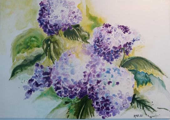 Hortensien, Acryl auf Leinen,