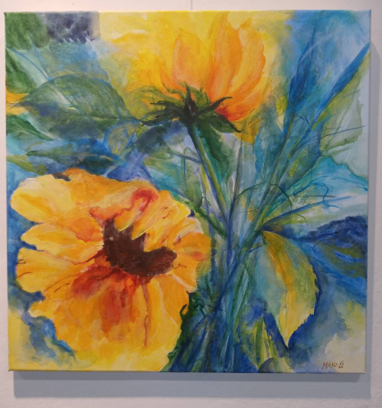 Sunflowers - Acryl auf Leinen, Aquarelltechnik