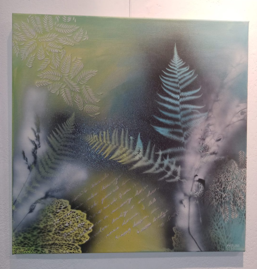 Romance - Arcyl auf Leinen, Collage mit Struktur und Spray-Elementen