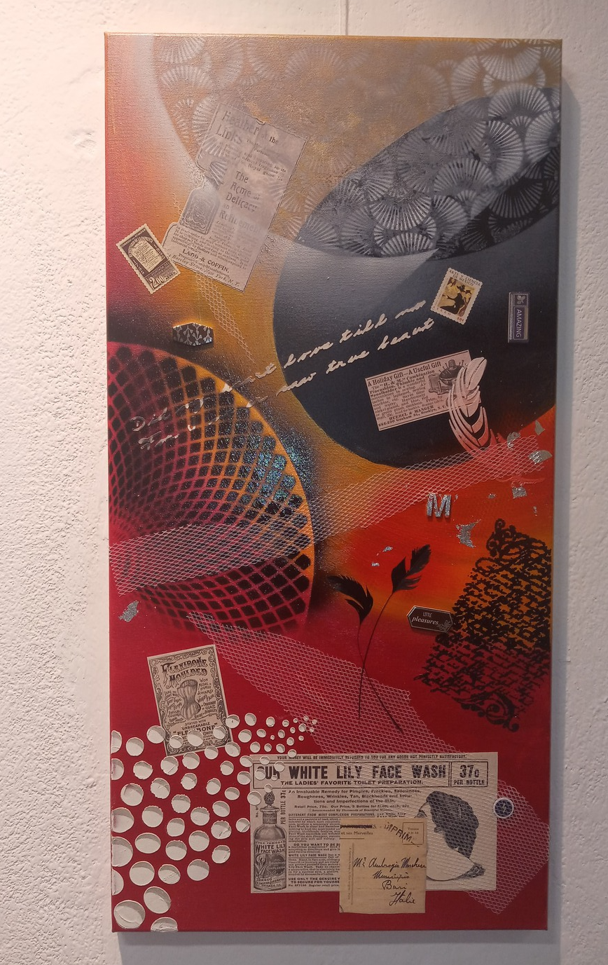 Vintage - Acryl auf Leinen, Collage,