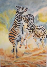Zickenkrieg - mit Passepartout 60x80, Realmaße 39,5x56,5, Soft-Pastellkreide auf Papier mit Acryl akzentuiert, verkäuflich