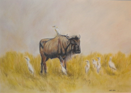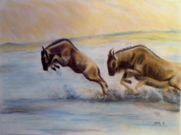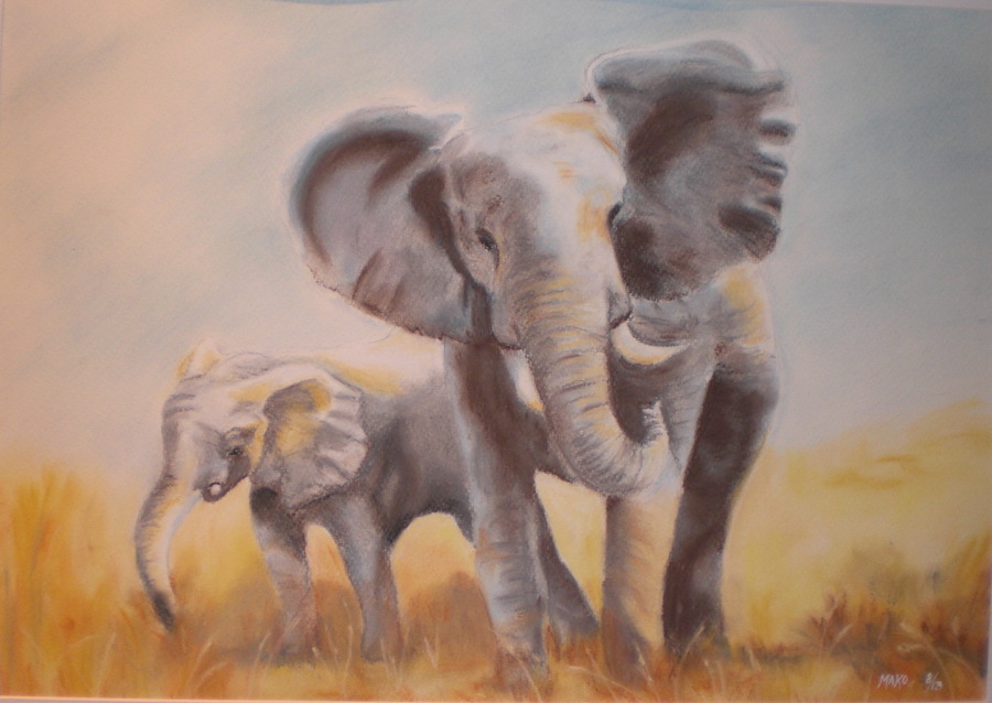 Masai Mara, 36 x 48cm, Pastellkreide auf Papier, verkäuflich